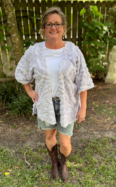 This is a vintage Chenille purple jacket. This chenille features a heart shaped pattern. One size fits most.