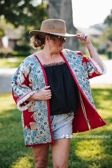 Vintage hand stitched red, white and blue star quilt. Custom embroidery has been added to camouflage wear. The sleeves have beautiful chenille fringe. This quilt does have some slightly darker and worn areas because it was so loved.